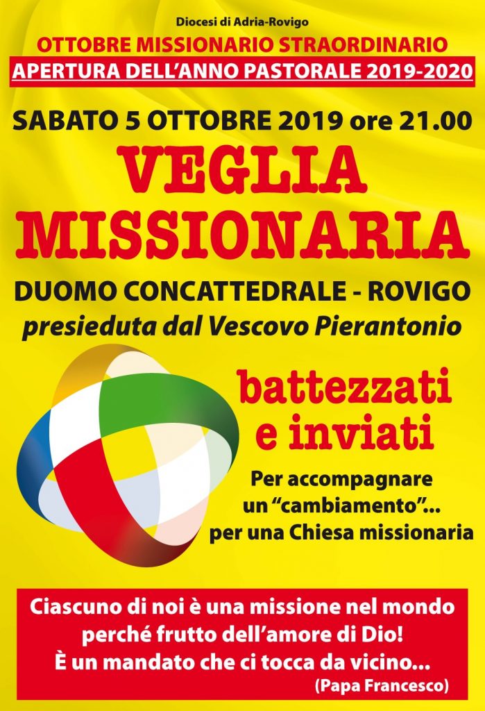 “Battezzati ed inviati”…per accompagnare il cambiamento e per una chiesa tutta missionaria Veglia missionaria in Duomo a Rovigo, sabato 5 ottobre ore 21, con apertura dell’Anno Pastorale 2019-2020
