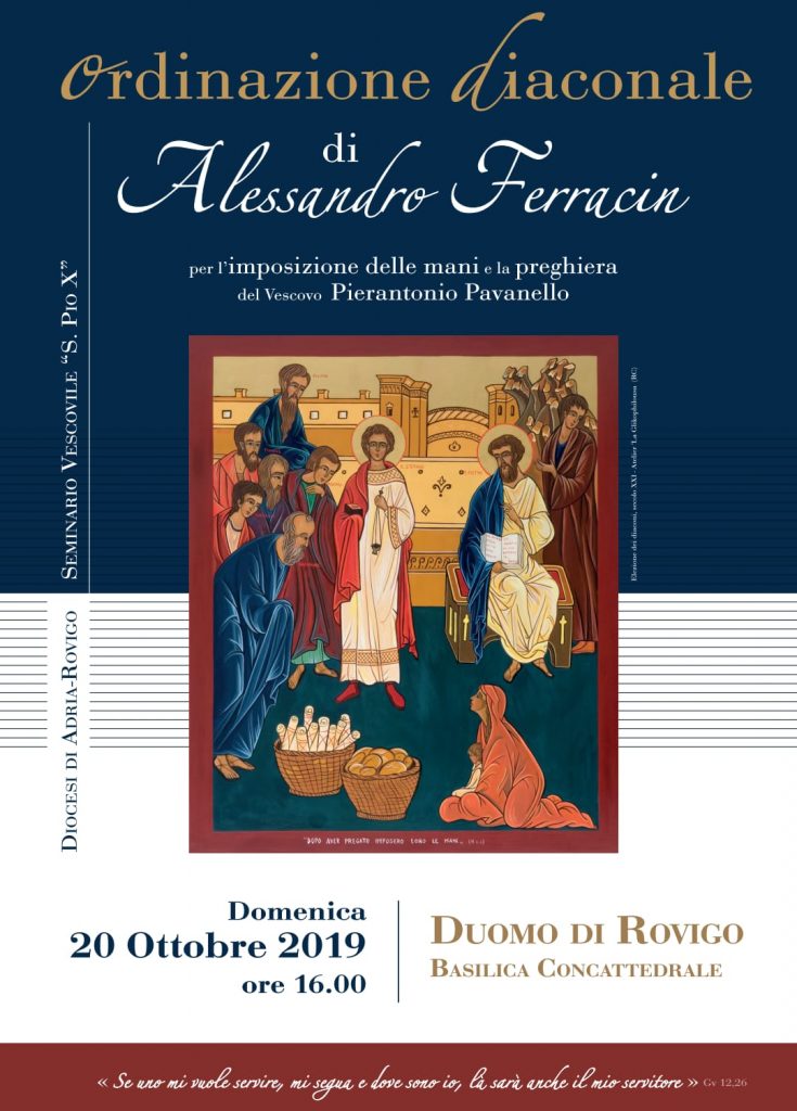 Ordinazione diaconale di Alessandro Ferracin – alunno del Seminario diocesano – per l’imposizione delle mani e la preghiera del Vescovo Pierantonio Pavanello Duomo-Concattedrale di Rovigo Domenica 20 ottobre, ore 16.00