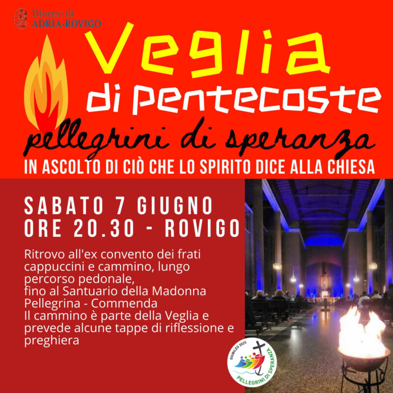 Sabato 7 giugno si svolgerà a Rovigo la veglia diocesana di Pentecoste. In questo anno giubilare la veglia prevede anche un tempo di pellegrinaggio, che inizierà alle 20.30 presso l’ex convento dei frati cappuccini e si concluderà presso il Santuario della Madonna Pellegrina.